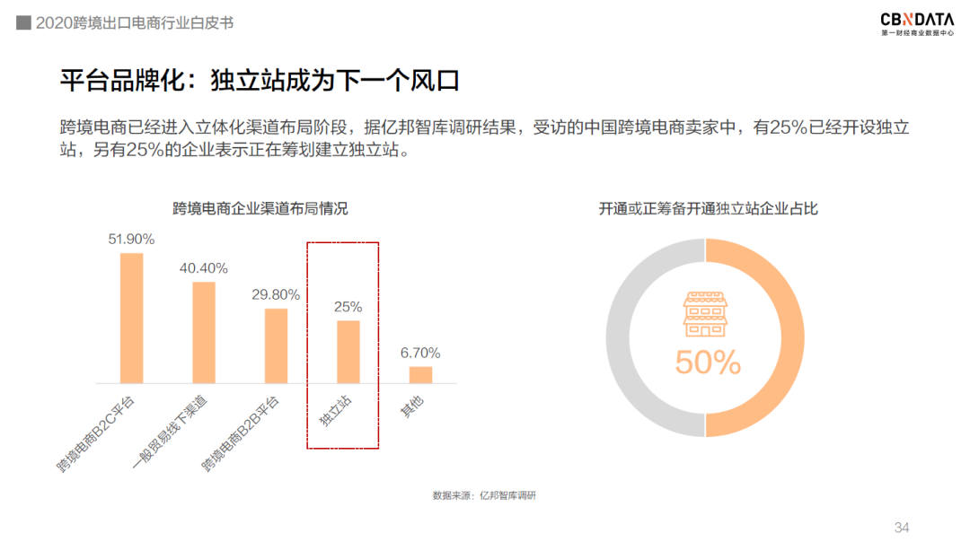 跨境电商已经进入立体化渠道布局阶段受访的中国跨境电商卖家中有25%已经开设独立站。独立站具又精准、灵活的优势,将成为企业打破业务天花板或扩展新市场的重要渠道。
