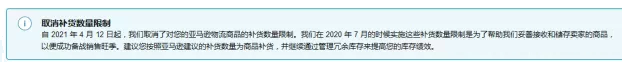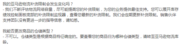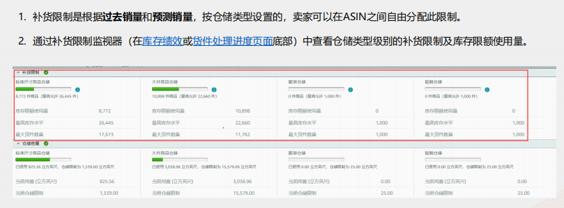补货限制是根据过去销量和预测销量,按仓储类型设置的,卖家可以在ASIN之间自由分配此限制。