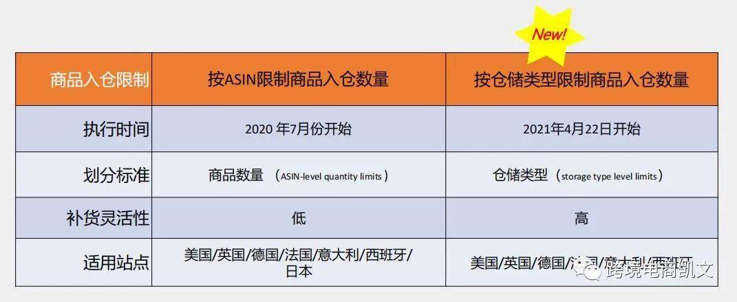 亚马逊物流商品入仓限制政策更新,由原来按ASIN限制商品入仓数量调整为按仓储类型限制商品入仓数量。