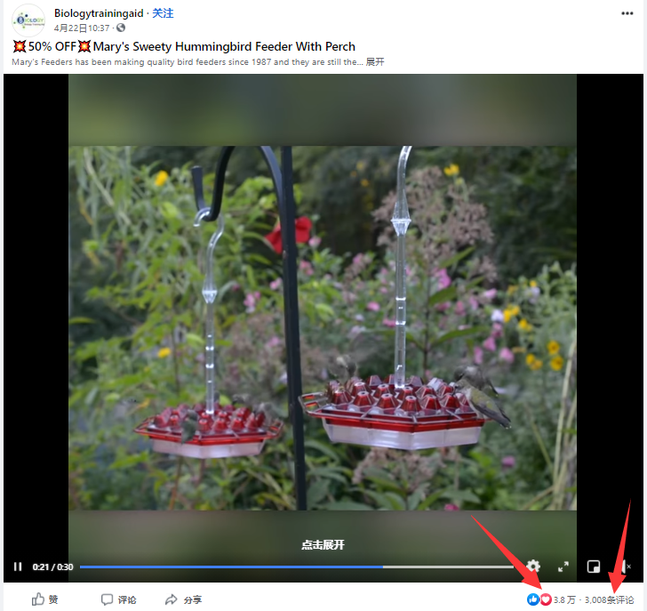 这个帖子互动率也很高,通过视频找到了这个Facebook主页的官网独立站