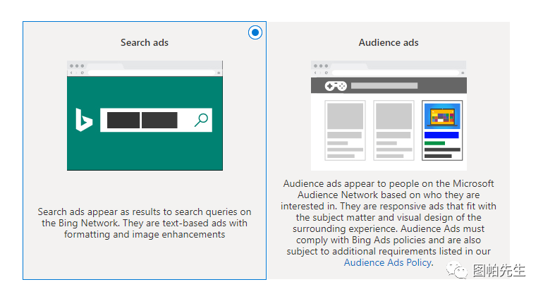 然后就是搜索类型的购物广告(audience类似于谷歌的展示广告,也是不太建议使用)