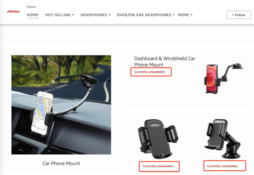 另一大卖家通拓虽未证实是否涉及到此次封号事件中,但其亚马逊店铺大量显示“Currently unavailable(当前无货)”状态。