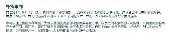 为此,侃哥在上周亚马逊更新的欧洲站FBA新政中,找到了一段关于补货限制的描述:卖家可以通过售出库存商品,移除或弃置滞销库存,以及取消不紧急的未发货,来腾出更多的商品仓储空间。