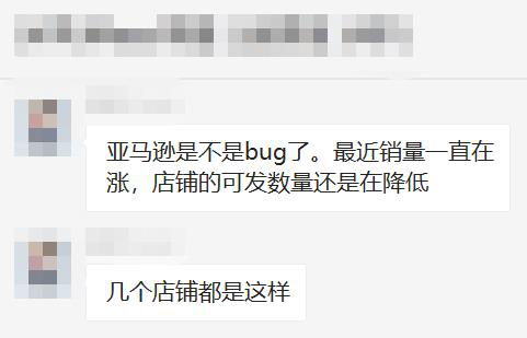 按照上述政策,按理说加快商品销售是能够提高库容的。然而有卖家却提出了质疑:亚马逊是不是bug了?最近销量一直在涨,几个店铺的可发货数量却都是在降。