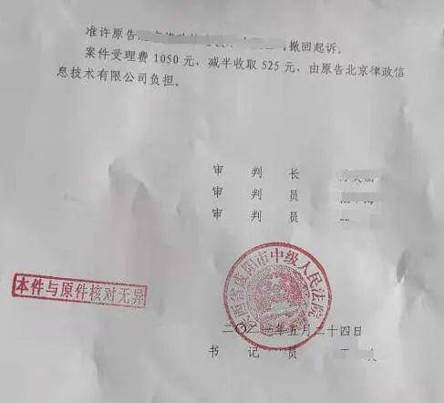 然后直到最近,我们收到了裁定书,对方果然撤诉了。