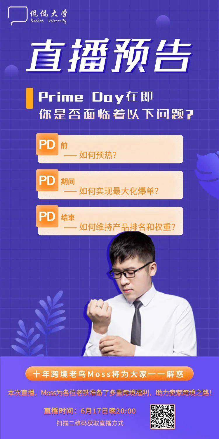 最后,鉴于Prime Day几天后就要开启,6月17日晚8点,跨境老鸟Moss老师也为各位老铁准备了一场“冲刺Prime Day”的福利直播,从三个阶段不同难点,有针对性地解答大家的运营难题!感兴趣的老铁可以扫描下方海报二维码??,获取直播预约通道!