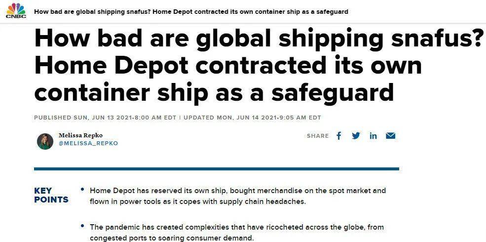 家得宝已经通过空运运输电动工具、水龙头、电子零组件、扣件及其他“较小、价值更高的产品”,或者是在市场上购买现货,即使价格要高出4倍。