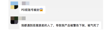 另一位卖家在PD当天遇到恶意跟卖的无良同行,导致产品被警告下架,卖家直呼被气死了。