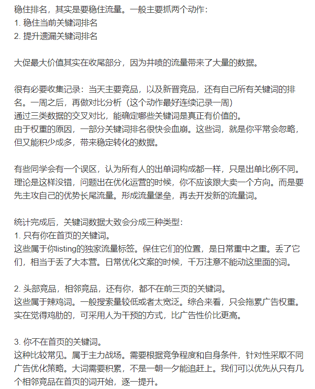 回到亚马逊生意本质,对卖家而言,大促之后的复盘总结,更为重要。那么在大促之后,如何稳住排名呢?如何避免流量出现雪崩的情况。这里,侃哥分享一位卖家朋友的微博,希望能给各位卖家带来帮助和启发。
