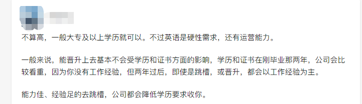 虽说现如今,招聘的门槛不算太高,但是有HR认为“亚马逊运营岗的学历要求基本是大专学历,不过相较于学历来说,我们更看重能力”。