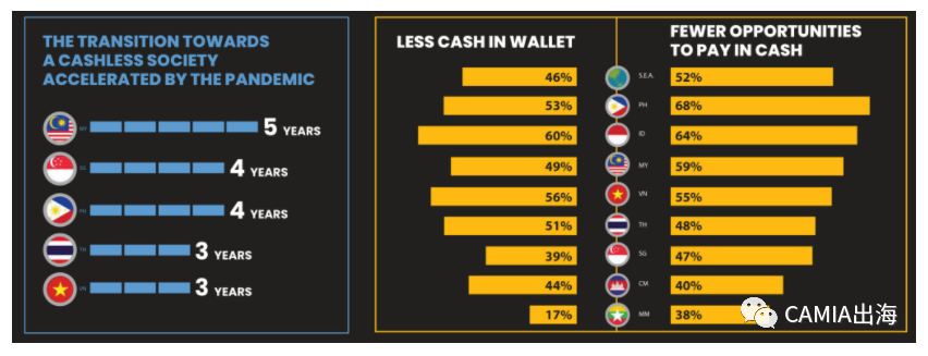 新冠肺炎的出现在加速采用无现金支付方面发挥了重要作用,研究发现,东南亚各国向无现金社会的过渡速度加快了3至5年。