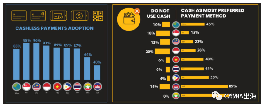 相比之下,无现金支付在缅甸和柬埔寨仍处于起步阶段,分别只有 64% 和 40% 的消费者使用它们。