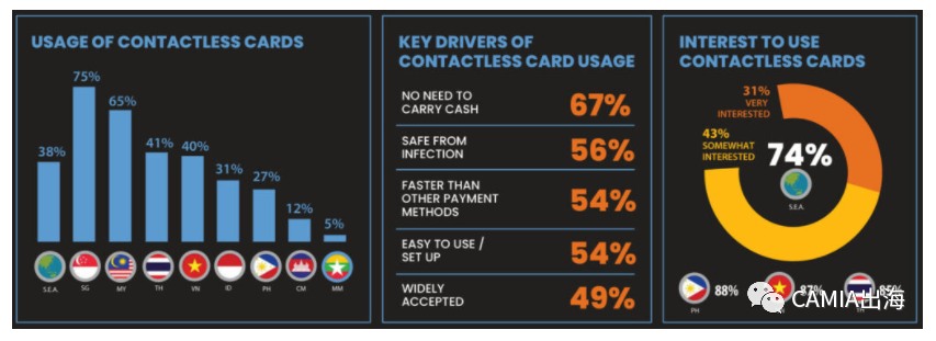 Visa 的一项研究显示,在东南亚85%的消费者采用无现金支付解决 Visa 的《2021 年消费者支付态度研究》还发现,与疫情前相比,46% 的东南亚消费者钱包中的现金更少,尤其是印尼、越南和泰国的消费者。