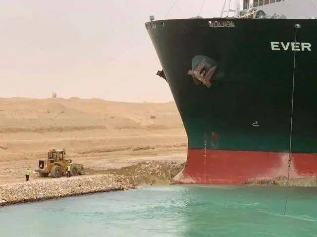 2021年3月23日,“长赐号”“卡”在了埃及苏伊士运河里,造成河道严重堵塞。