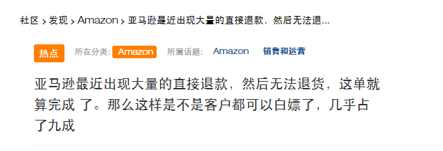 有卖家也发言表示赞同:退款不退货比退货要好很多,亚马逊会承接退货损失,相当于亚马逊买了。退货回来可售,亏一波FBA运费和小部分佣金;退货回来不可售,亏一波FBA运费和小部分佣金和货本。