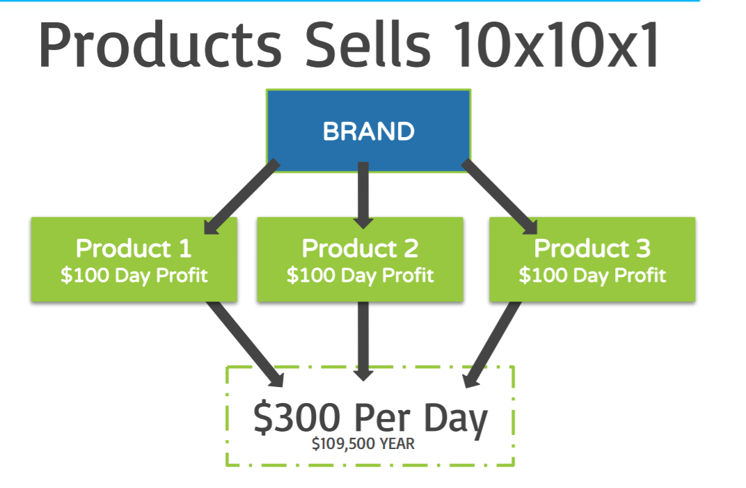 首先我们在选品的时候就应该秉持10 X 10 X 1的法则,如下图所示,这个法则的逻辑很简单,就是说我们可以找一些一天只出10单左右的产品就行,不追求每天的出单量,但是利润有一定要求,比如需要能赚10个美金,如果一天一个产品能出10单,每单赚10个美金,那么如果你有100个这样的产品是多少销售额呢?如果有一千个呢?这里再强调一下,并不是都让你去找一天出10单, 一单赚10美金的产品,只是想通过这个例子告诉大家,我们选品的对象就是那些出单量不高,竞争度低,利润还可以的产品。