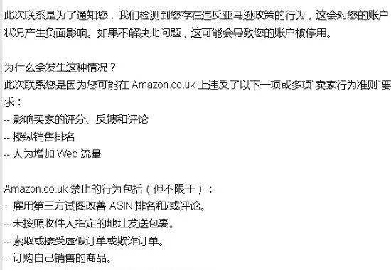 无独有偶,有卖家同时收到来自亚马逊的账户停用风险警告邮件,因为卖家存在违反亚马逊政策的行为。