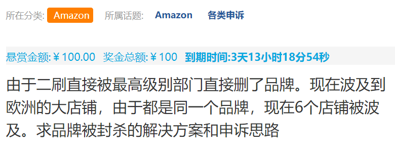 卖家A:美国站小店铺因二刷被亚马逊删除品牌,现在波及到了欧洲站的大店铺,该品牌下合计6个店铺全部被封。