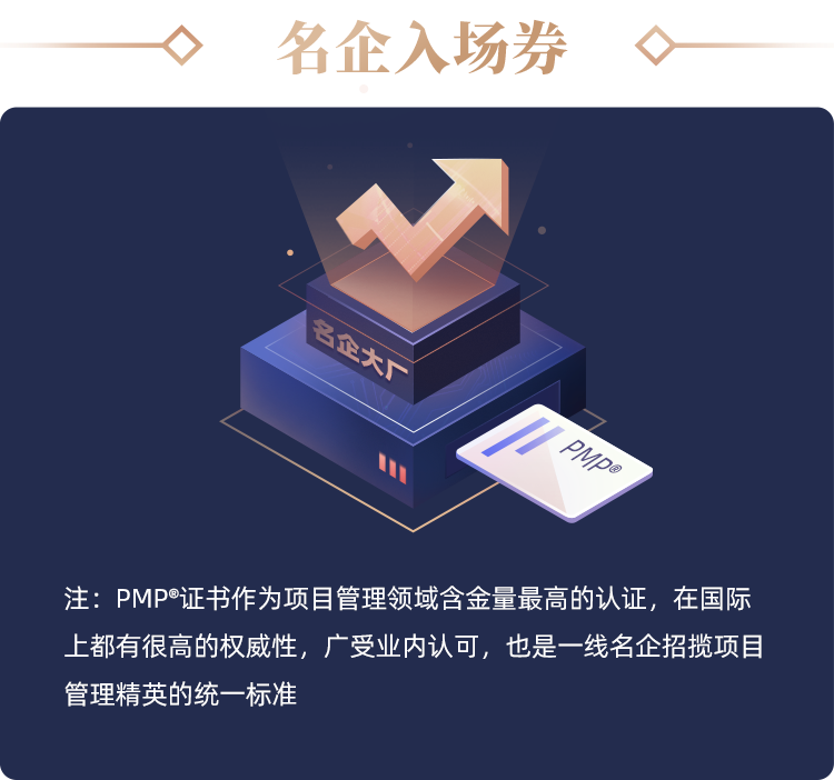 做好项目管理,掌握相关知识体系、方法论固然重要,而持有 PMP 证书 ,不仅仅可以让你升职加薪,更是进入一流名企的“入场券”。