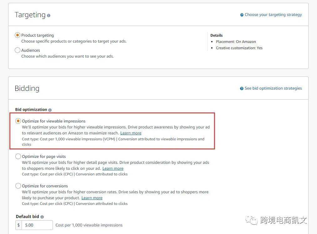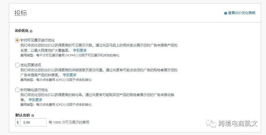 注意:如果你输入的 VCPM 出价低于$3,你的广告可能不会带来可见的曝光量,正常情况下卖家出价在3美金或以上才有可能获得曝光展示。