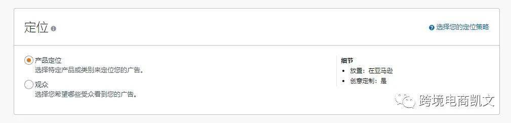其中选择千次可见展示广告进行商品投放,展示位置主要在亚马逊相关联的竞品详情页或类别来定位您的广告。