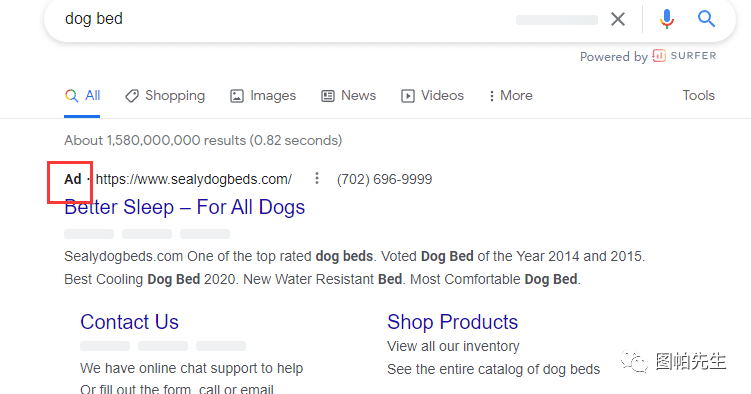 而关于SEM,或者说泛指谷歌广告,就是当你在Google搜索某些关键词的时候,你会注意到最上方的搜索结果会显示"ad"字样。
