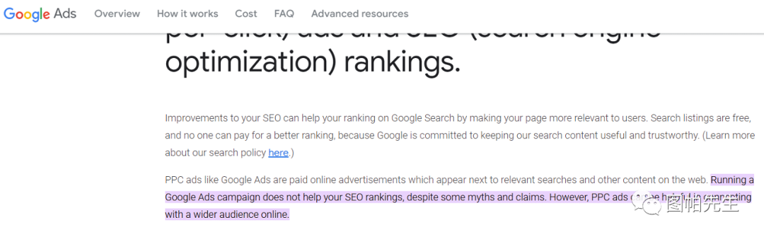 此外,必须说明一点,谷歌官方声明了:广告并不能提高在Google的自然搜索排名