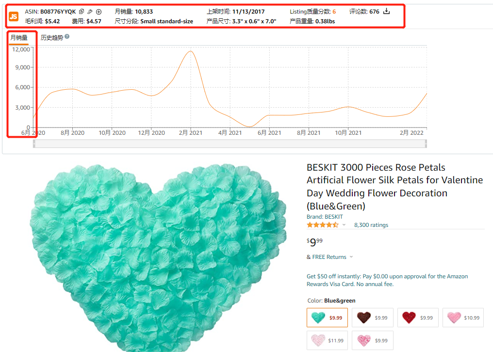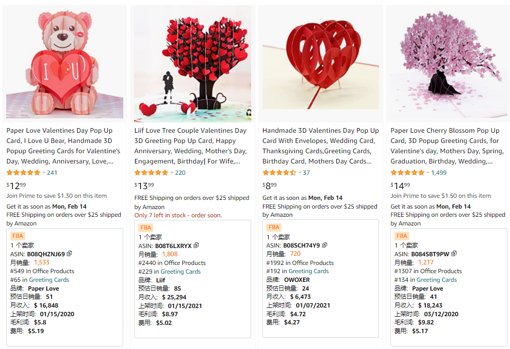 与此同时,最近亚马逊和“情人节”相关产品的销量也是水涨船高,很多产品甚至都达到了日出千单的成绩。