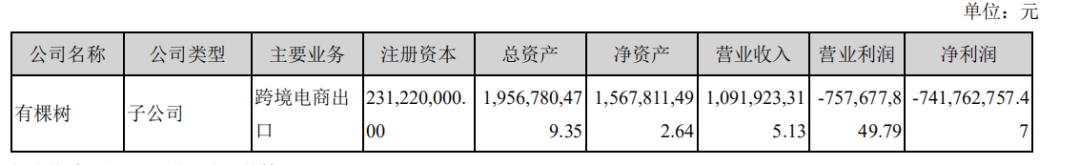 有棵树母公司天泽信息发布2021年半年报,财报显示,受亚马逊平台政策环境变化影响,加之独立站业务大幅萎缩,其子公司有棵树今年上半年营业收入为10.92亿元,同比下降51.12%,缩水了一半多。净资产从19.50亿元,下降至15.68亿元。而净亏损,则达到7.42亿元。