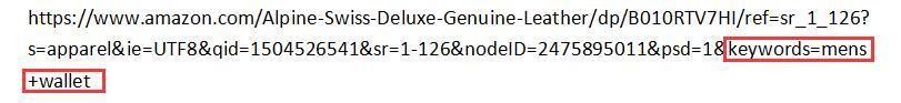 这个链接是带了关键词mens wallet, 客户通过这个链接下单购买,可以提高该产品的关键词质量分和转化率。建议主推产品先通过赠送样品得到几个Review,部分带图片和视频。