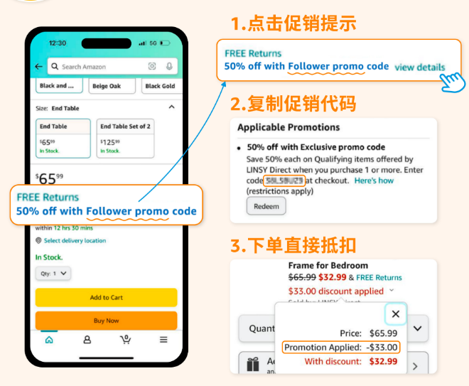 品牌定制促销(BTP)能够让您以促销代码的形式创建独家折扣优惠,吸引品牌定制受众细分范围内的高购买意向顾客,例如品牌粉丝、复购客户、近期购买过的客户、高消费客户和未付款客户。您还可以通过新推出的“潜力新客”人群来获取新顾客。