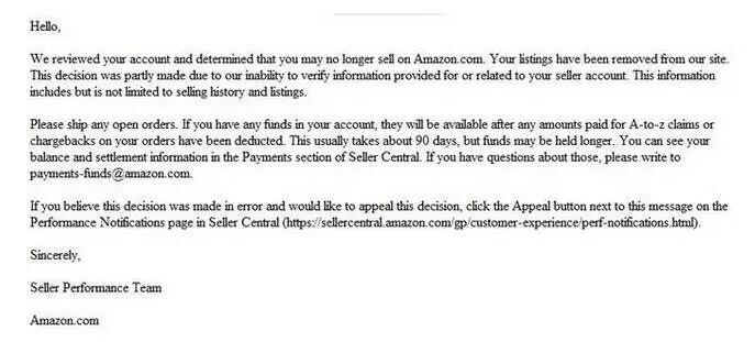 一般收到上文提到的封号提醒邮件,很有可能是由于账号提供的资料有问题,导致审核不通过账号被封。面对这种情况,你可以尝试就已提供的资料联系客服申诉,等待亚马逊回复。