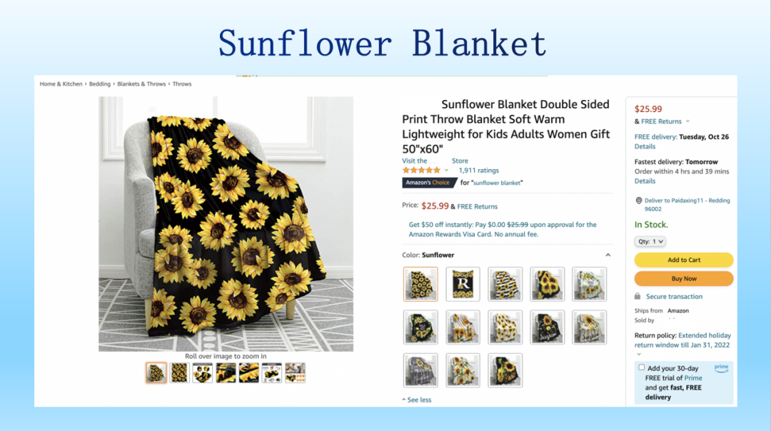通过图片来定义产品,我们可以看到同样是向日葵主题的产品,它的展现形态有多种多样,相对应的我们可以在这样一个主题下,创作出非常多的图片,设计到产品上就变成了多个不同款式的sku,以这样的方式,我们可以无限地做创作,无止境地迭代,拥有无穷可能。
