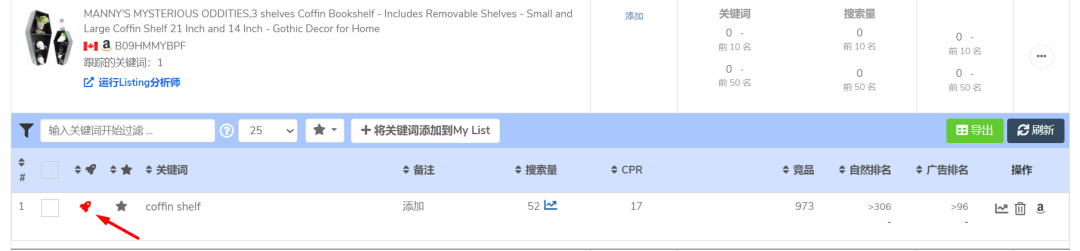 例如,在对“coffin shelf”出价3美元后,将这个关键词放入Keyword Tracker,并将状态设置为增强状态,开启Boost小火箭,每天检查24次。