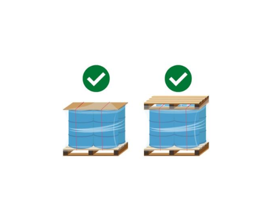 托盘包装可用帆布、纸、聚乙烯、聚氯乙烯等塑料薄膜(包括可拉伸和可收缩的)对单元货物进行全裹或半裹。全裹包括拉伸包装和收缩包装两种。
