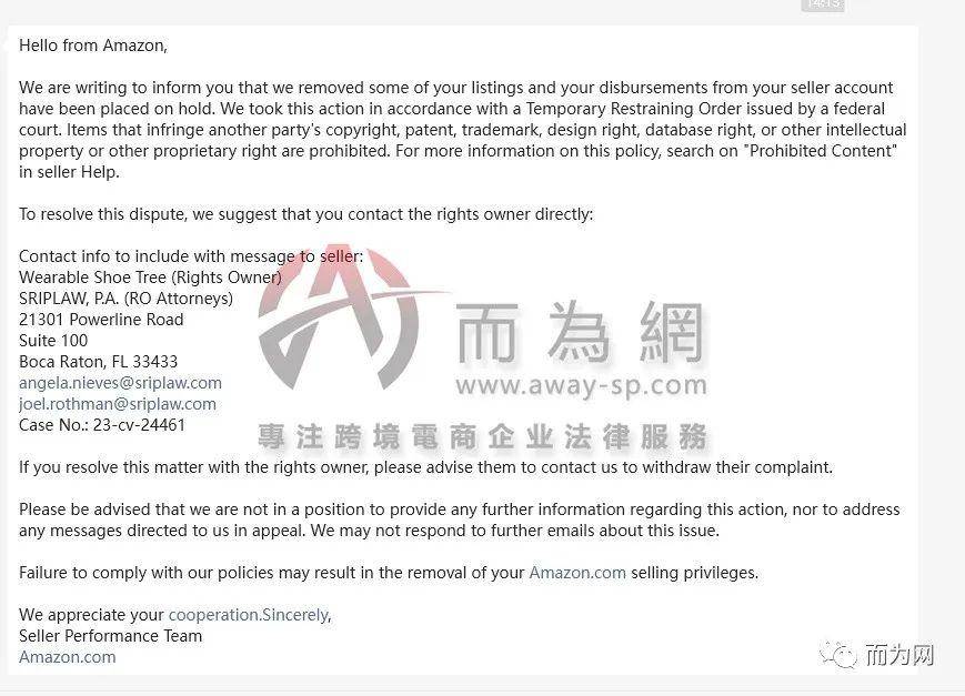近期,小为后台收到有卖家反馈遇到了23-cv-24461的TRO案件,经查询,涉案产品是一款十分常见的鞋撑,本次是发起的商标+专利维权,目前已经开始冻结!