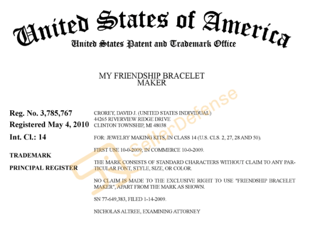 这款手链编制器早在2010-2012年申请了外观和发明专利保护。