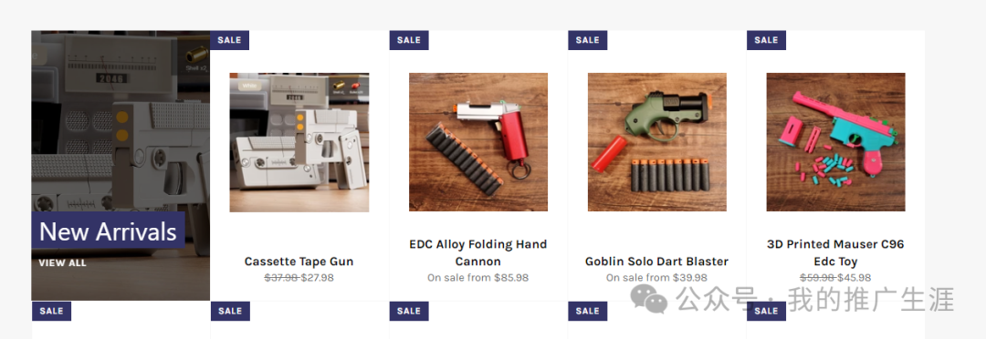 这个网站是卖各种水弹枪,这类产品最近几年在国内抖音也非常的火爆,产品的售价从几十美金到几百美金都有。