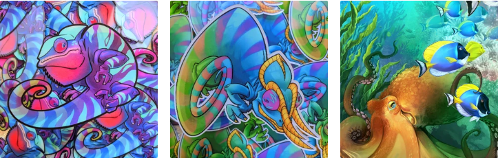 Greg Giordano 的画作以色彩鲜艳和细节丰富著称。作品主题涵盖动物、花卉、植物、风景等,这些作品精致,仿佛将观者带入了一个生动的自然世界中,体验仿若身临其境的感受。