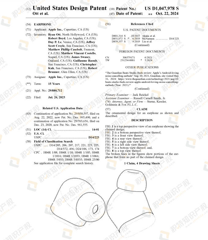 相关的外观专利非常多,以下仅展示10月份下证的部分专利: