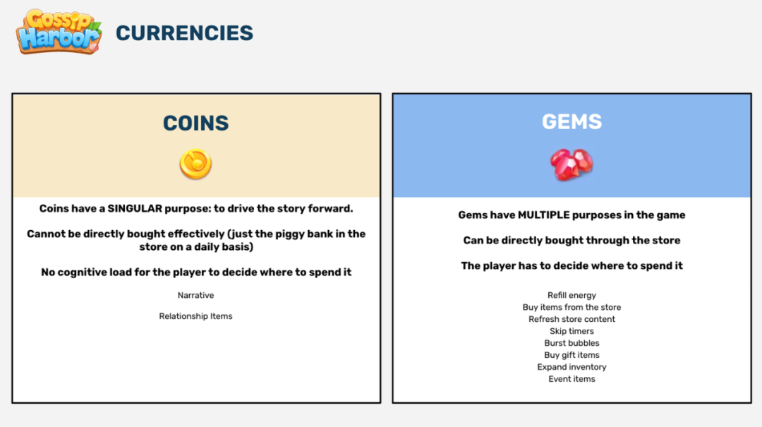 总体设计上看,「Gossip Harbor」的季节活动和同类竞品大体结构相似,都会持续 30 天时间,需要玩家完成一系列任务赚取季节积分(Seasonal Points),从而升级解锁包括能量和宝石在内的多种奖励。「Gossip Harbor」最大的不同则在于把季节活动的升级曲线做了更细致的调整,让前期难度足够低,引导玩家付费。