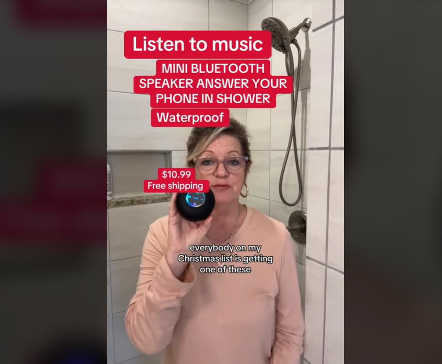@mommasuncooking通过实际演示,分享了一款能在洗澡时满足听音乐、接电话的迷你蓝牙音箱,引起TikTok网友热议,并有音乐爱好者表示很需要。